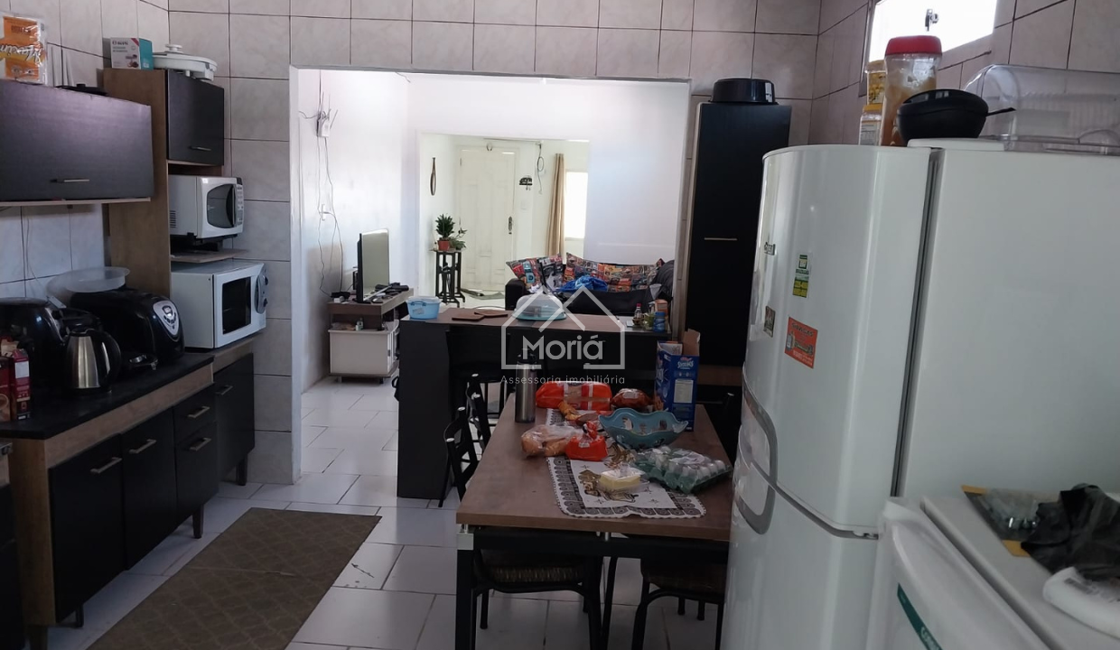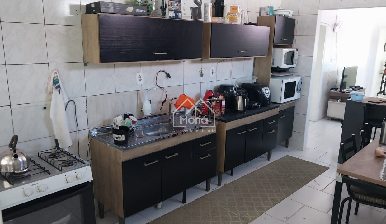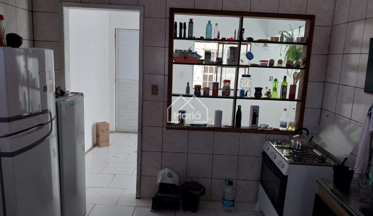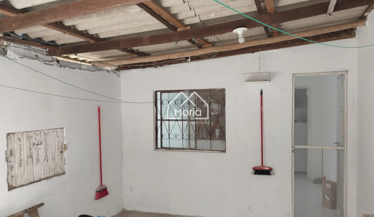 Casa dos fundos conta com banheiro, cozinha americana e dois quartos.